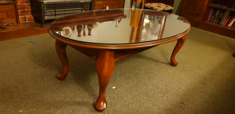 Very good condition for age. Item is a complete set with its classic queen anne style and quality cherry wood finish. Make a glamourous statement with this contemporary black coffee table from the abildgaard collection. Oak oval wood coffee table vintage, queen anne legs pedestal style. The distinguishing characteristic for this furniture grade woodworker style table leg is the top square design with chamfer.